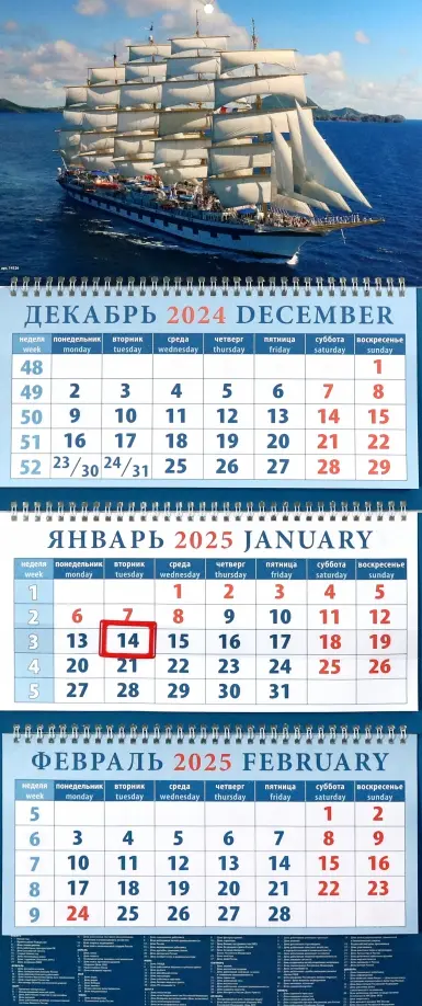 Календарь квартальный на 2025 год Парусник