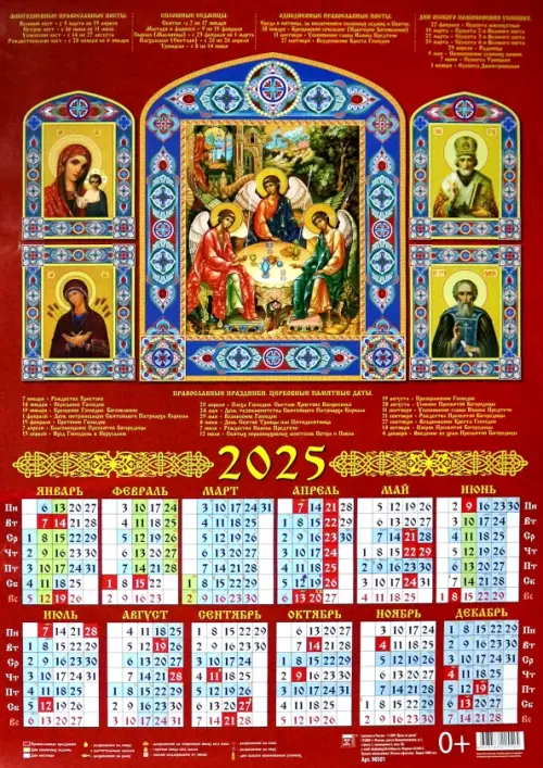 Календарь на 2025 год настенный листовой Святая Троица со святыми