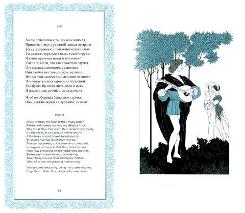 Сонеты Шекспира - это собрание из 154 лирических стихотворений Вильяма Шекспира на раннем современном английском языке, написанные, в своем большинстве в 1592-1599 в расцвет Елизаветинской эпохи. Они имеют личный, интимный характер и не создавались для публикации. Они повествуют о дружбе, о любви и философии взаимоотношений с двумя не персонифицированными адресатами. Шекспировские сонеты принято делить на три основные тематические группы: сонеты с 1 по 126 - посвящены молодому другу - меценату; с 127 по 152 к смуглой даме; 153 и 154 - заключительные, венчающие цикл, сонеты о Купидоне.