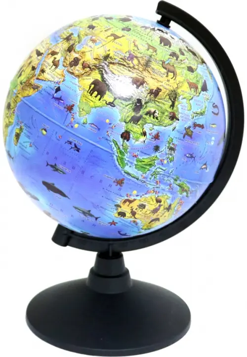 Глобус Земли зоогеографический, детский, диаметр 21 см, на черной подставке (К012100204)