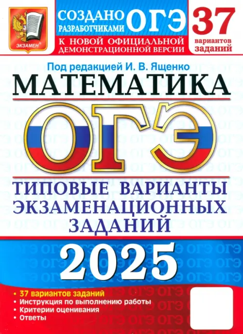 Авторы заданий - ведущие специалисты, принимающие непосредственное участие в разработке методических материалов для подготовки к выполнению контрольных измерительных материалов ОГЭ. Пособие содержит 37 типовых вариантов экзаменационных заданий Основного государственного экзамена 2025 года по математике. Назначение пособия - отработка практических навыков учащихся по подготовке к экзамену по математике в 9 классе. В сборнике даны ответы ко всем заданиям. Пособие адресовано учителям и методистам, использующим типовые варианты экзаменационных заданий для подготовки учащихся к Основному государственному экзамену 2025 года, оно также может быть использовано учащимися для самоподготовки и самоконтроля.