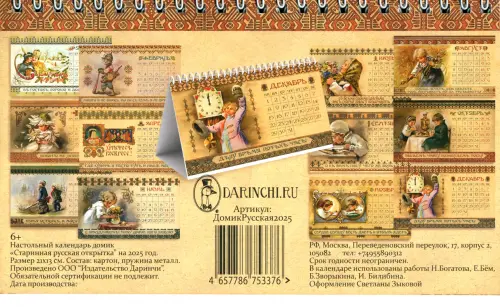 Если вы обнаружили ошибку в описании товара «Календарь настольный-домик на 2025 год Старинная русская открытка», то выделите её мышкой и нажмите Ctrl+Enter. Спасибо, что помогаете нам стать лучше!