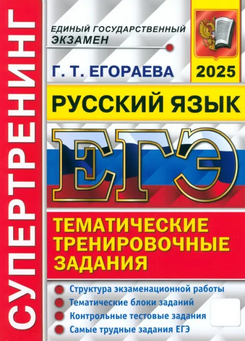 Если вы обнаружили ошибку в описании товара «ЕГЭ-2025. Русский язык. Тематические тренировочные задания. Супертренинг» (авторы: Егораева Галина Тимофеевна), то выделите её мышкой и нажмите Ctrl+Enter. Спасибо, что помогаете нам стать лучше!