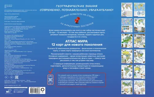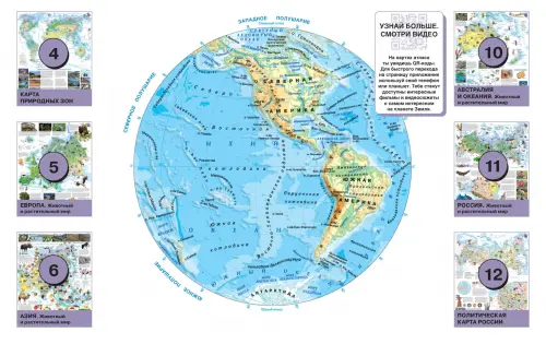 В нашем атласе размещены QR-коды. С помощью смартфона или планшета можно перейти по ссылке и посмотреть минифильмы о животных и природных явлениях. Дополнительная увлекательная информация в книге поможет вашему ребенку провести время с пользой, расширить кругозор.