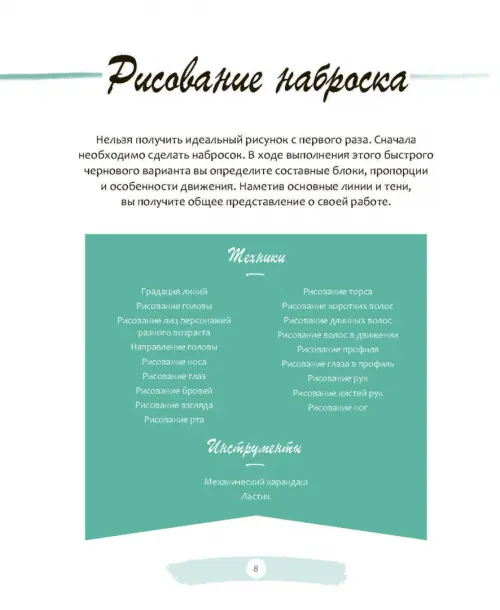 Примеры, разобранные в этой книге, помогают достичь двух важных целей: получить удовольствие от рисования и одновременно приобрести прочную базу. С каждым уроком вы будете изучать новые техники. Постепенно развивая свои навыки, вы почувствуете уверенность в себе и в итоге сможете рисовать как настоящий сёнэн-мангака!