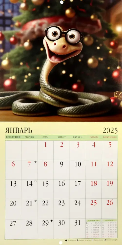 Змея – мудрое, уравновешенное и знающее себе цену животное. Но змея может быть милой, забавной и симпатичной. Именно так изображен символ 2025 года на страницах календаря «Комсомольской правды». Он заставит Вас не раз улыбнуться в течение всего года!