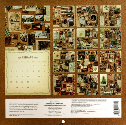 Найти неповторимое очарование в каждом месяце, вдохновиться на творчество и привнести немного уюта в дом вместе с "Календарем Настроения". Двенадцать коллажей от Дарьи Левиной, автора "Книги Вдохновения" и "Романтики Дачи", будут радовать вас круглый год.