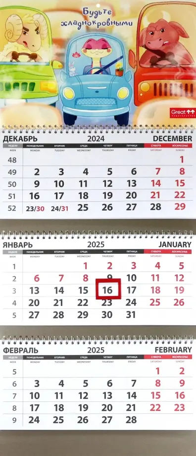 Календарь квартальный на 2025 год Будьте хладнокровными