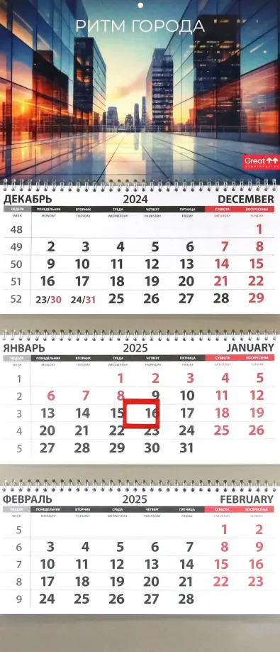 Если вы обнаружили ошибку в описании товара «Календарь квартальный на 2025 год Офис. Ритм города», то выделите её мышкой и нажмите Ctrl+Enter. Спасибо, что помогаете нам стать лучше!
