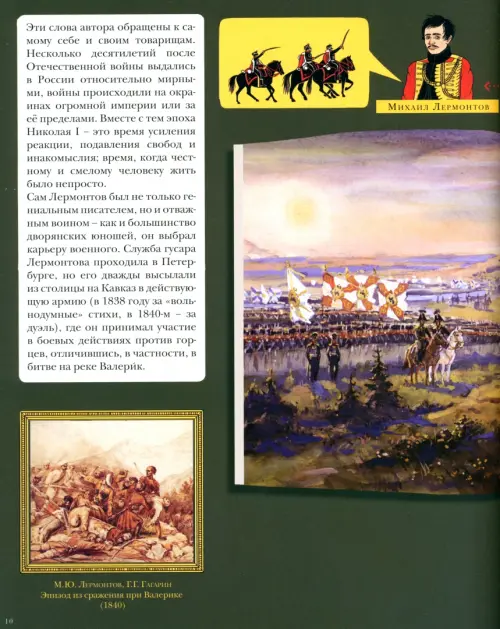 "Книга в книге" содержит текст знаменитого стихотворения Михаила Юрьевича Лермонтова "Бородино" (1837) и постраничные пояснения к сложным терминам и событиям, описанным поэтом. В оформлении внутренней книги использованы классические иллюстрации В. Г. Шевченко, погружающие читателя в атмосферу эпохи.