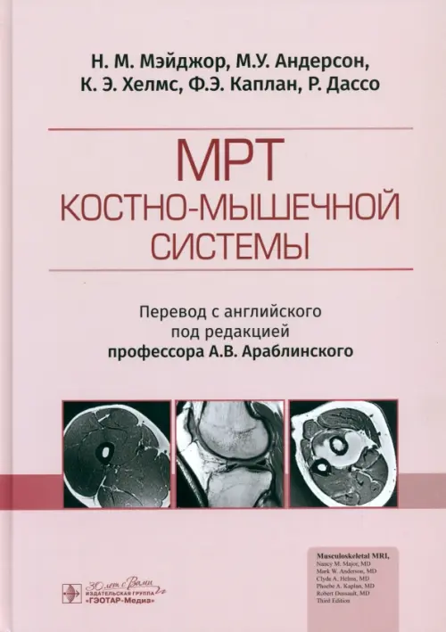 Руководство основано на личном опыте авторов по применению МРТ в диагностике травм, воспалительных заболеваний и опухолей, оно богато иллюстрировано рисунками, таблицами и схемами. В нем рассматриваются вопросы МРТ-анатомии костей, суставов и мягких тканей, все виды костно-мышечных повреждений и заболеваний и возможности МРТ для их выявления. Также описаны базовые принципы МРТ применительно к диагностике заболеваний костно-мышечной системы, включая технические аспекты выполнения исследований на современных аппаратах с напряженностью магнитного поля 1,5 и 3,0 Т. Рассмотрены возможности МРТ в диагностике инфекций костно-мышечной системы, воспалительных поражений суставов и суставного хряща, опухолей и травмы костей. Большое внимание уделено поражениям различных анатомических областей - височно-нижнечелюстного, плечевого, локтевого суставов, лучезапястного сустава и костей кисти, позвоночника, тазобедренных суставов и костей таза, коленного сустава и, наконец, голеностопного сустава и костей стопы.