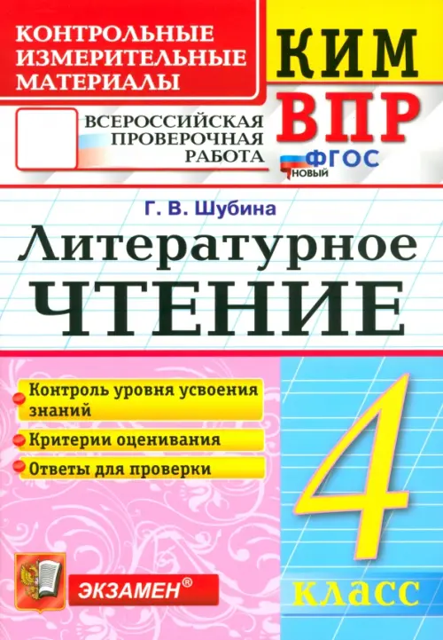 Если вы обнаружили ошибку в описании товара «ВПР. Литературное чтение. 4 класс. Контрольные измерительные материалы» (авторы: Шубина Галина Викторовна), то выделите её мышкой и нажмите Ctrl+Enter. Спасибо, что помогаете нам стать лучше!
