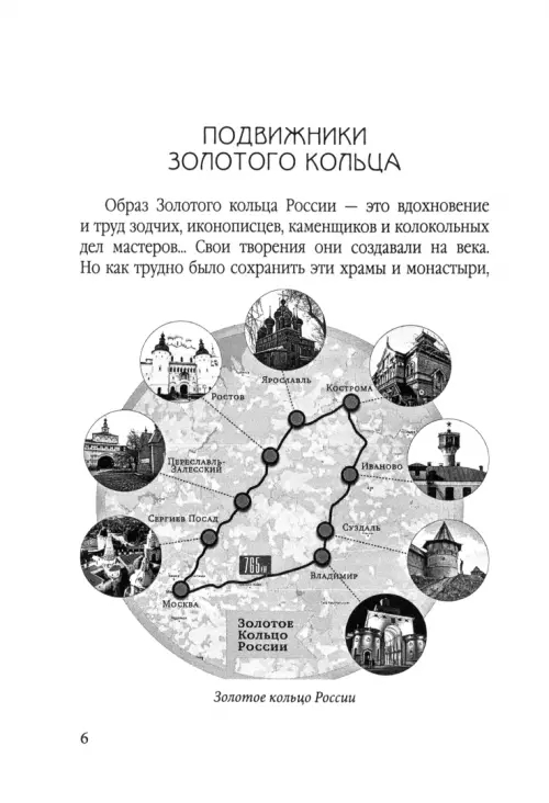 Золотое кольцо России - это неизменно увлекательное путешествие, которое запоминается на всю жизнь. Ростов Великий, Владимир, Суздаль, Ярославль, Сергиев Посад, Кострома, Переславль-Залесский, Иваново. В памяти остаются блистающие на солнце купола, суровые монастыри, таинственные судьбы князей и героев. Эта крепости, полные шедевров русской архитектуры, опоясали Москву - столицу Руси. В этой книге открывается потаённая история городов Золотого кольца. Тайный смысл храмов, которые связаны с подвигами военных и юродивых. Такие есть в каждом из городов Золотого кольца. Нас пленяют судьбы этих незаурядных людей, создававших шедевры и веривших в спасение человечества. Книга не просто интересна, а необходима каждому, кто собирается проездиться по России, кто интересуется городами нашей страны и хотел бы их посетить. Хватайте эту книгу, садитесь в автобус, автомобиль или на поезд - и вперёд! К новым знаниям, впечатлениям и приключениям!