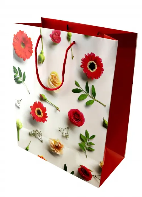 Пакет подарочный Цветы на белом