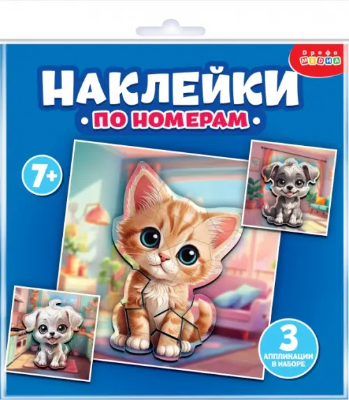 Аппликация наклейками по номерам - это увлекательный набор для детского творчества. В наборе есть всё необходимое - 3 картинки-основы с милыми собачками и весёлым котёнком и 3 набора наклеек. Набор для творчества очень прост в использовании.