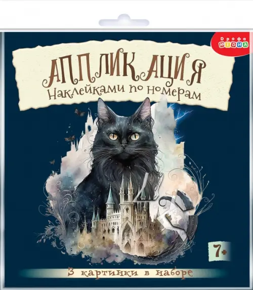 Аппликация наклейками по номерам - это увлекательный набор для детского творчества. В наборе есть всё необходимое - 3 картинки-основы с загадочными чёрными котами и 3 набора наклеек.