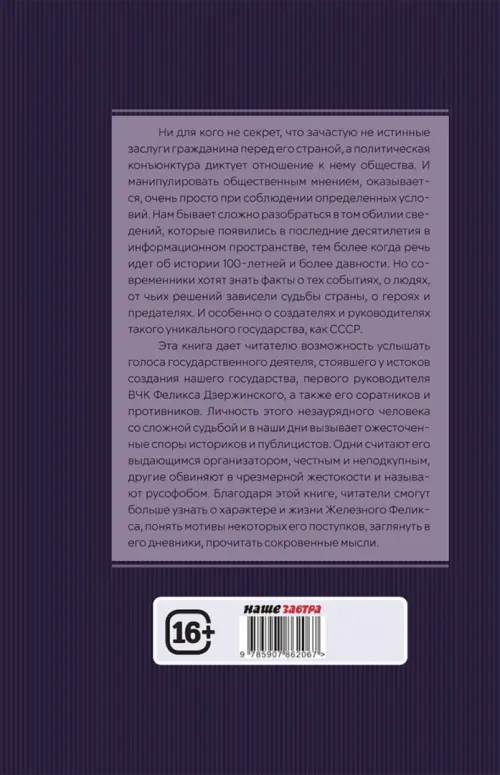 Эта книга дает читателю возможность услышать голоса государственного деятеля, стоявшего у истоков создания нашего государства, первого руководителя ВЧК Феликса Дзержинского, а также его соратников и противников. Личность этого незаурядного человека со сложной судьбой и в наши дни вызывает ожесточенные споры историков и публицистов. Одни считают его выдающимся организатором, честным и неподкупным, другие обвиняют в чрезмерной жестокости и называют русофобом. Благодаря этой книге читатели смогут больше узнать о характере и жизни Железного Феликса, понять мотивы некоторых его поступков, заглянуть в его дневники, прочитать сокровенные мысли...