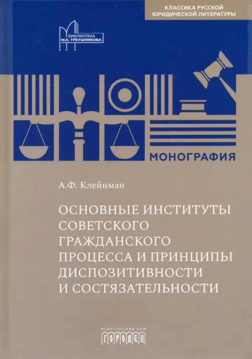 Настоящая книга - бережно восстановленный текст монографии А.Ф. Клейнмана, одновременно и его докторской диссертации "Основные институты советского гражданского процесса и принципы диспозитивности и состязательности", написанной в период Великой Отечественной войны. Она явилась концептуальной основой впервые создаваемого в СССР и в мире социалистического гражданского процесса.