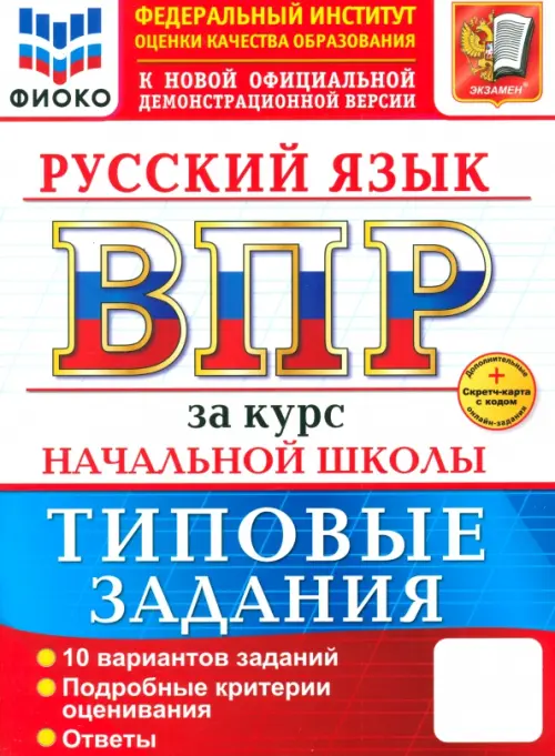 Данное пособие полностью соответствует федеральному государственному образовательному стандарту для начальной школы. Книга содержит 10 вариантов типовых заданий Всероссийской проверочной работы (ВПР) за курс начальной школы. Ответы к заданиям являются материалами для учителя, а поэтому даны в середине пособия и могут быть легко изъяты, что повышает объективность оценки знаний учащихся. Сборник предназначен учащимся 4-х классов начальной школы, учителям и методистам, использующим типовые задания для подготовки к Всероссийской проверочной работе за курс начальной школы.
