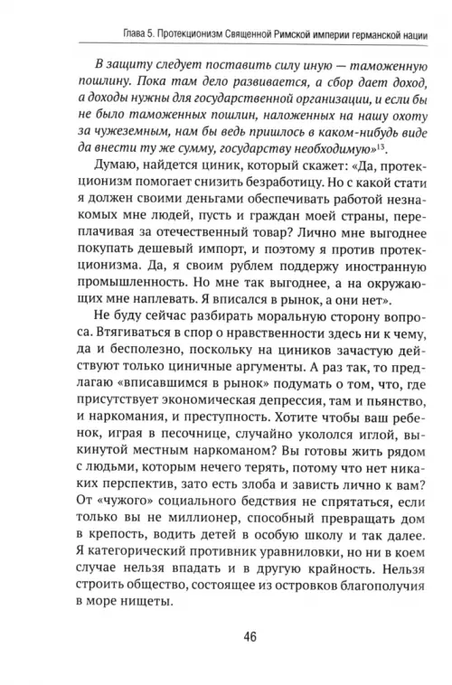 Опираясь на широкий круг источников, автор показывает, в чем заключается реальный "рецепт" экономического успеха. Целый ряд всемирно известных экономических чудес достигнуты не на основе господства принципов "невидимой руки" рынка. В разных странах - США и Японии, Франции и Южной Корее, Италии и Австралии, Китае, Швеции, Российской империи и многих других - блестящие результаты достигались благодаря иному подходу. Протекционизм, планирование, высокая роль государства в регулировании экономикой - вот что позволило осуществить мощный промышленный и научно-технический рывок. Напротив, "невидимая рука" нередко приводила страны к разорению и становилась преградой на пути развития экономики. Тем не менее в мировом масштабе уже много лет ведется кампания по дискредитации протекционистского подхода.