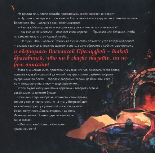 Романтичная сказка "Царевна-лягушка" о силе любви и взаимопомощи обретает новое прочтение в ярких, словно драгоценности, иллюстрациях в стиле Врубеля.