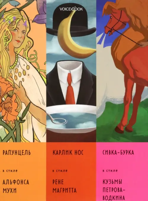 В альбом входят сказки - "Рапунцель", выполненная в манере чешского модерниста Альфонса Мухи, "Карлик нос" в иллюстрациях а-ля Рене Магритт и "Сивка-Бурка", в иллюстрациях к которым творчески переработаны мотивы картин Кузьмы Петрова-Водкина.