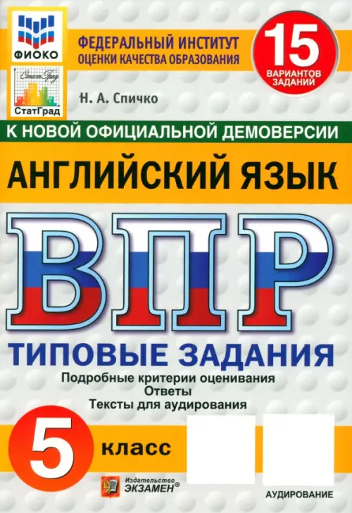 Данное пособие полностью соответствует федеральному государственному образовательному стандарту. Книга содержит 15 вариантов типовых заданий Всероссийской проверочной работы (ВПР) по английскому языку для учащихся 5-х классов. Сборник предназначен учащимся 5-х классов, учителям и методистам, использующим типовые задания для подготовки к Всероссийской проверочной работе по английскому языку.