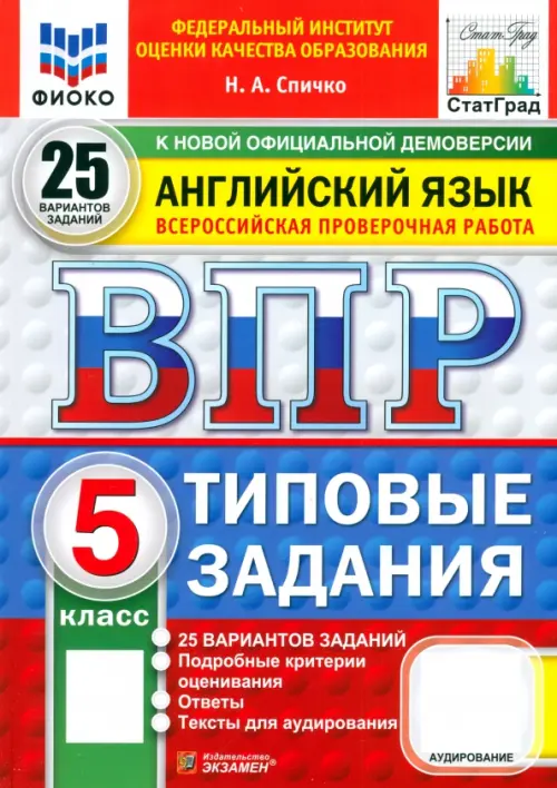 Книга содержит 25 вариантов типовых заданий Всероссийской проверочной работы (ВПР) по английскому языку для учащихся 5-х классов.