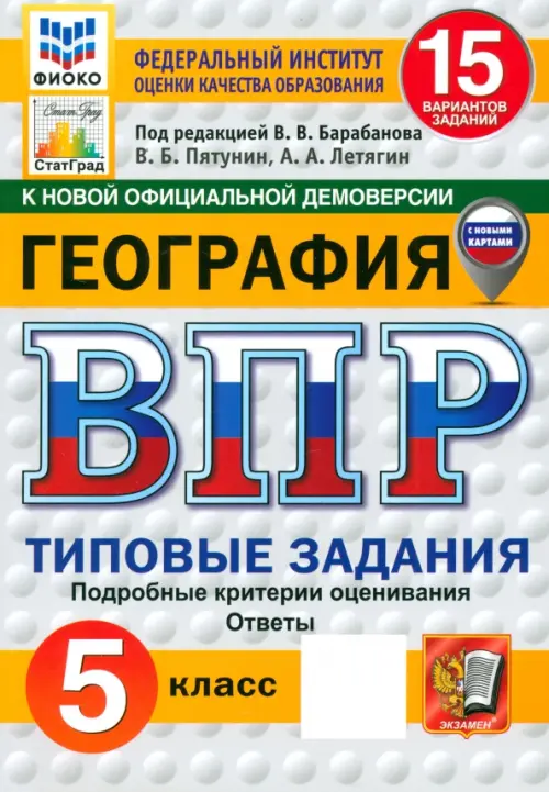 Книга содержит 15 вариантов типовых заданий Всероссийской проверочной работы (ВПР) по географии для учащихся 5-х классов.