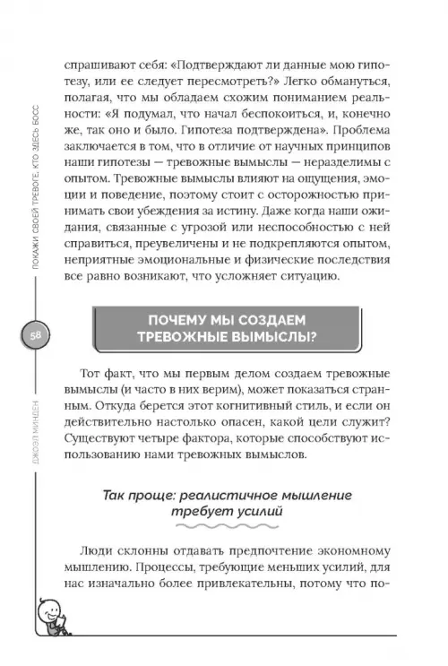 В процессе чтения вы узнаете, что такое тревожные вымыслы (катастрофизация, завышение вероятности, неадекватное преодоление), почему они возникают и что с ними делать. Вы научитесь не просто избегать тревожных мыслей, игнорировать проблемы или пускать ситуацию на самотек, а реально перестроите свое мышление и поведение. Беспокойство и страх перестанут сковывать вас.