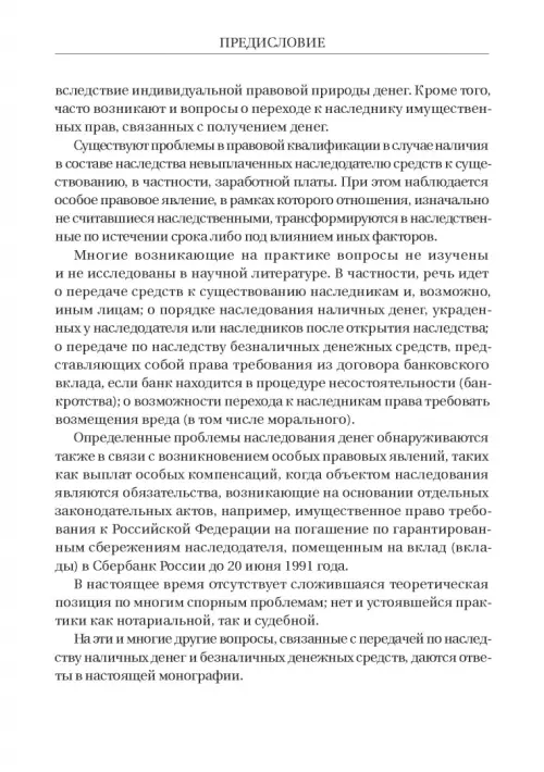 Настоящая монография представляет собой исследование теоретических и практических аспектов наследственного правопреемства наличных денег и безналичных денежных средств в случае смерти по современному российскому праву. Большое внимание в книге уделяется вопросам нотариального оформления наследственных прав на наличные деньги и безналичные денежные средства.