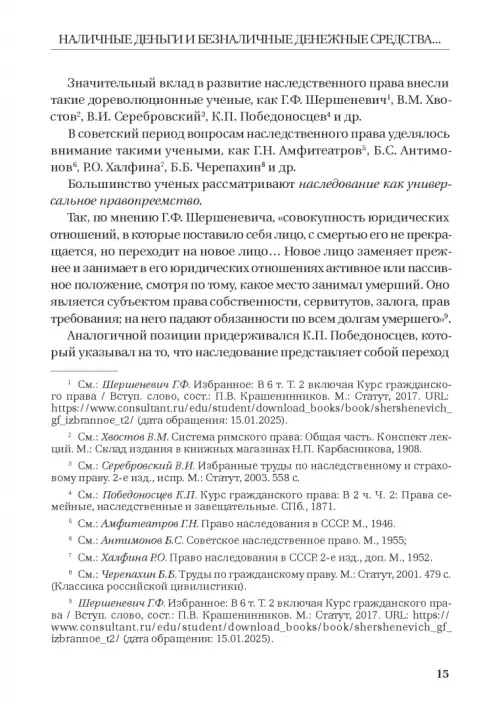 Если вы обнаружили ошибку в описании товара «Наличные деньги и безналичные денежные средства. К вопросу о наследовании по российскому праву» (авторы: Новопашина Ульяна Семеновна), то выделите её мышкой и нажмите Ctrl+Enter. Спасибо, что помогаете нам стать лучше!