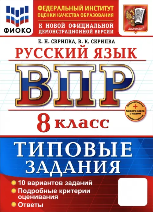 Если вы обнаружили ошибку в описании товара «ВПР. Русский язык. 8 класс. 10 вариантов. Типовые задания» (авторы: Скрипка Елена Николаевна, Скрипка Вероника Константиновна), то выделите её мышкой и нажмите Ctrl+Enter. Спасибо, что помогаете нам стать лучше!