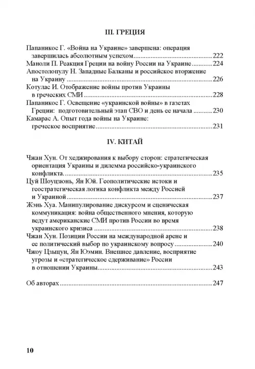 В сборнике представлены рефераты научных статей экспертов из Абхазии, Азербайджана, Армении, Казахстана, Киргизии, Таджикистана, Узбекистана, арабского мира, Ирана, Израиля, Турции, Греции и Китая, посвященных специальной военной операции. Отобранные статьи демонстрируют взгляд научной среды различных стран на современные события, а также их влияние на мировую политику и политику их государств.