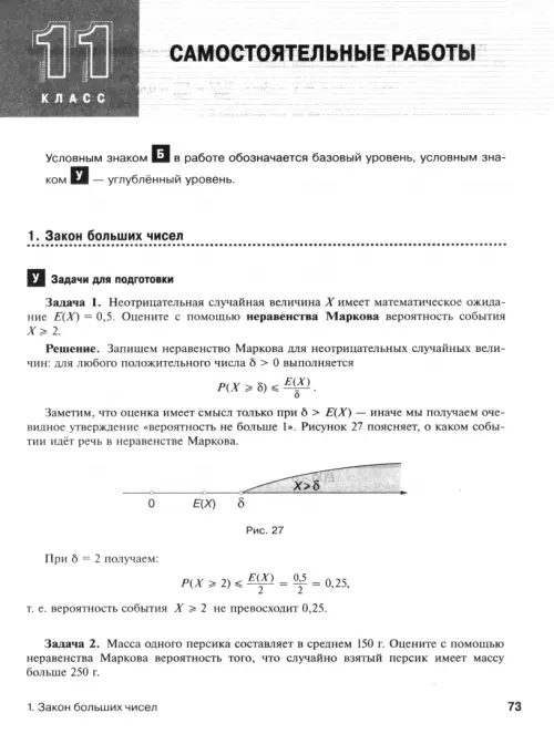 Учебное пособие содержит самостоятельные и контрольные работы базового и углублённого уровней по вероятности и статистике для учеников 10-11 классов. В пособии приводится пошаговый разбор основных заданий самостоятельных работ. Самостоятельные и контрольные работы представлены в двух вариантах как для базового, так и для углублённого уровней. Отдельно выделена подготовка к ЕГЭ, в которой разбираются типовые задания по вероятности, встречающиеся на экзамене, предложены задания для самостоятельного решения.