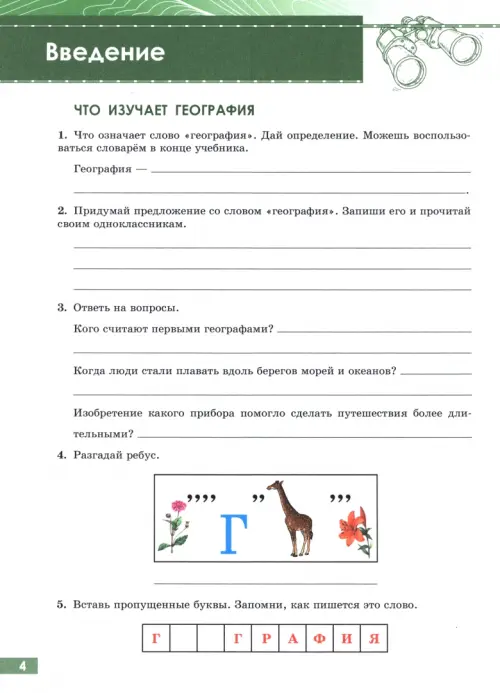 Учебный материал представлен в соответствии с последовательностью изучения тем по предмету "География" в 6 классе и изложен таким образом, что позволит школьникам освоить базовое содержание учебного предмета на доступном для них уровне. В тетрадь включены задания для самостоятельной работы обучающихся по закреплению знаний, полученных на уроках географии, и для выполнения домашней работы. Часть заданий имеют коррекционную направленность, помогают развивать внимание, память, закреплять навыки правописания слов, сравнивать, обобщать и устанавливать причинно-следственные связи между объектами живой и неживой природы. Все задания, содержащиеся в тетради, имеют разную степень сложности, что позволяет учителю осуществлять дифференцированный подход к обучению учащихся с нарушением интеллекта. Рабочая тетрадь входит в состав учебно-методического комплекта по географии для 6 класса.