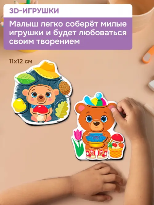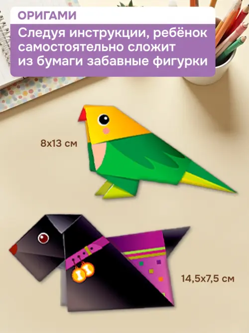 Большой набор для творчества надолго увлечёт ребенка! Используя разные техники и материалы, входящие в набор, можно изготовить 14 поделок.