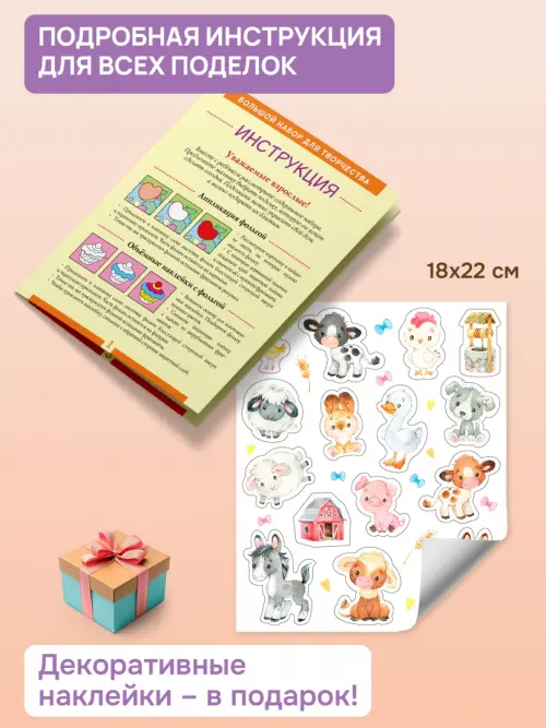 Большой набор для творчества подарит хорошее настроение и мальчикам, и девочкам. Лист с наклейками в подарок!