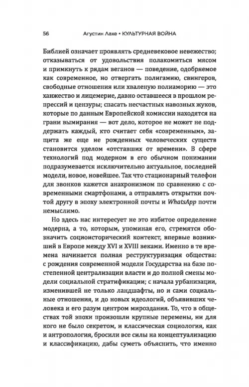 Известный писатель, политолог, интеллектуал, знаменитый своими лекциями, Агустин Лахе, опираясь на обширное литературное наследие самых выдающихся историков, социологов, философов и экспертов в области культуры и политики, дает определение понятию культурной войны и показывает, в какой степени культура обрела статус главного трофея власти, как именно зарождались и набирали силу подобные войны, начиная с эпохи модерна и до наступившего в наши дни постмодерна, и как в них выстоять. Параллельно он исследует, насколько хорошо разобрались в сути явления новые левые, в то время как правые недооценивали влияние культуры. Наконец, Лахе предлагает методы и средства, необходимые для рождения новых правых.