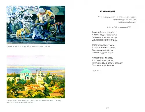 Эта книга - не "стихотворный сборник" в привычном понимании этих слов. Скорее, это некая квинтэссенция поэзии, публицистики и живописи, реальная хронология событий 2014-2025 годов, вернувших Крым и четыре региона Украины в состав Российской Федерации, а также философское осмысление роли России в мире и его истории, места человека в жизни общества, слияния его ипостасей любви к Родине и другому человеку. Многие стихи шли впереди событий - за две недели, за несколько дней до того, как случалось что-то поворотное. Рассчитана на широкий круг читателей.