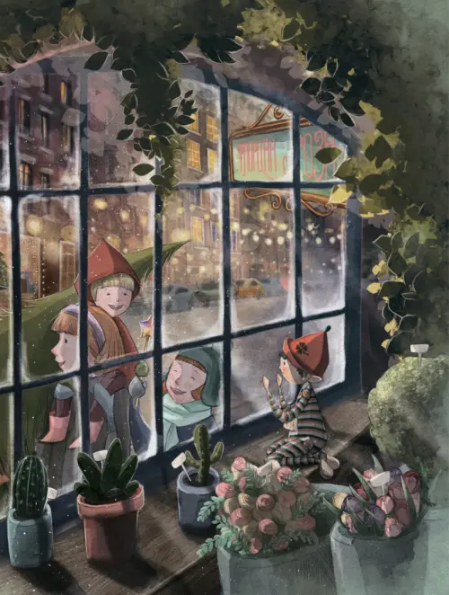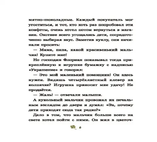 Лоскутный кукольный мальчик из цветочного магазина "Флориан и Роза" мечтает, чтобы с ним, как и с остальными игрушками, играли дети. Но дети бывают здесь редко, госпожи Розы больше нет, а господин Флориан всегда грустит, и даже приближающееся Рождество его не радует.