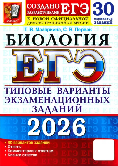 Если вы обнаружили ошибку в описании товара «ЕГЭ-2026. Биология. 30 вариантов. Типовые варианты экзаменационных заданий от разработчиков ЕГЭ» (авторы: Мазяркина Татьяна Вячеславовна, Первак Светлана Викторовна), то выделите её мышкой и нажмите Ctrl+Enter. Спасибо, что помогаете нам стать лучше!