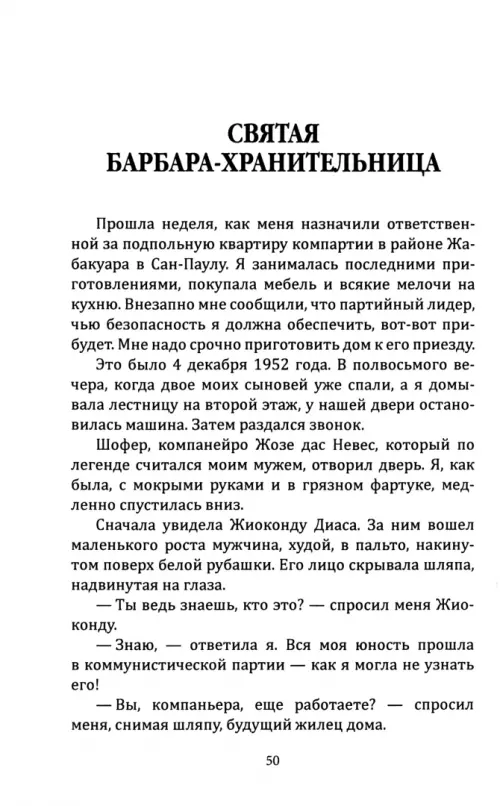 Мария Престес рассказывает историю своей жизни: детство, полное тревог, в семье коммунистов-подпольщиков; первое замужество, от которого остались горькие воспоминания; начало ее собственной политической деятельности. И, наконец, задание высшей сложности - ей поручают помочь генеральному секретарю компартии, только что вышедшему на свободу из тюрьмы. Это задание - партийная тайна. Какую роль Мария должна взять на себя - помощницы, телохранителя, экономки? Жизнь под одной крышей, постепенное сближение, зарождение доверия и понимания, возникновение любви. Эмиграция в Советский Союз. Торжественные встречи, приветствия, трудные переговоры. Утрата многих иллюзий, приобретение нового политического опыта. Затем возвращение в Бразилию, разрыв с национальной верхушкой партии, изоляция Престеса. И вот финал. Генерал, оставшийся без своего восставшего войска, один против всех, с непреклонной верностью своему идеалу. Прощание… Завершение земного пути Престеса в возрасте 92 лет. Обо всем это рассказано настолько сдержанно и трогательно, с таким достоинством и тактом… Без упоения - о времени славы и побед, и без отчаяния - о времени потерь.