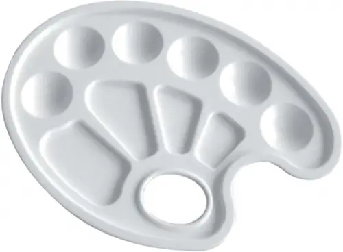 Палитра - незаменимый инструмент для любого художника. Палитра изготовлена из прочного пластика с удобным захватом для пальцев, предназначена для смешивания красок и получения желаемых оттенков. Благодаря получению различных цветов рисунки получаются намного интереснее. С помощью палитры можно проявить свою фантазию и разнообразить творческий процесс.