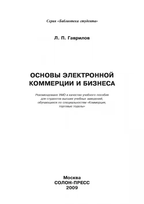 Учебное пособие "Основы электронной коммерции и бизнеса" предназначено для студентов высших учебных заведений экономического профиля, изучающих дисциплину "Основы электронной коммерции". Оно может использоваться и при изучении других смежных дисциплин, таких как "Информатика", "Прикладная информатика", "Информационные системы управления предприятием".