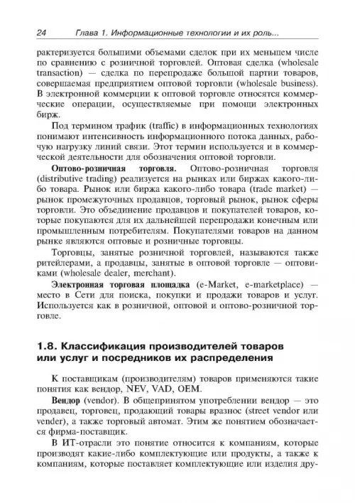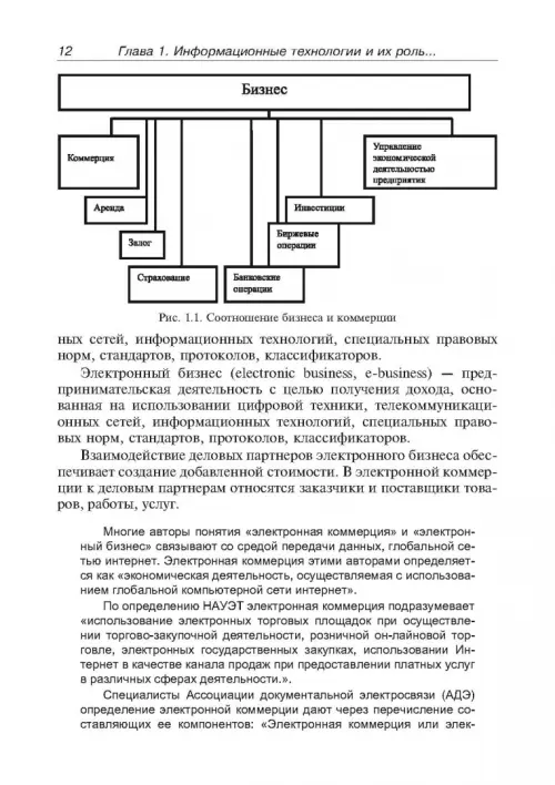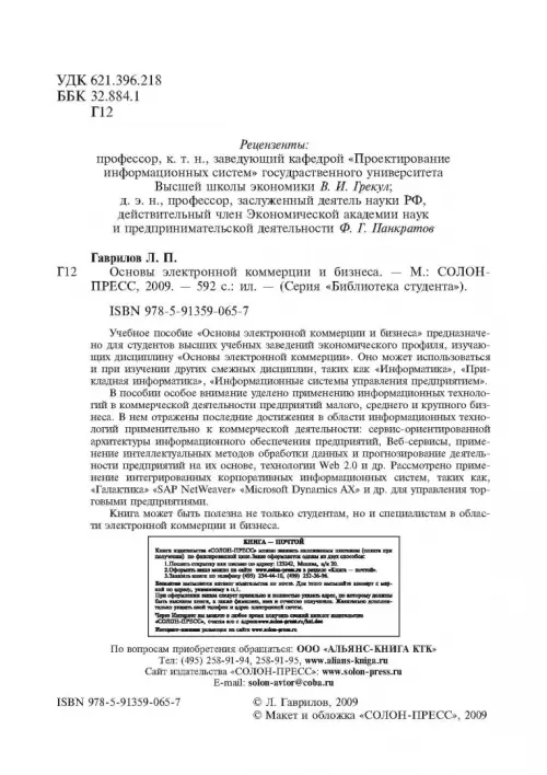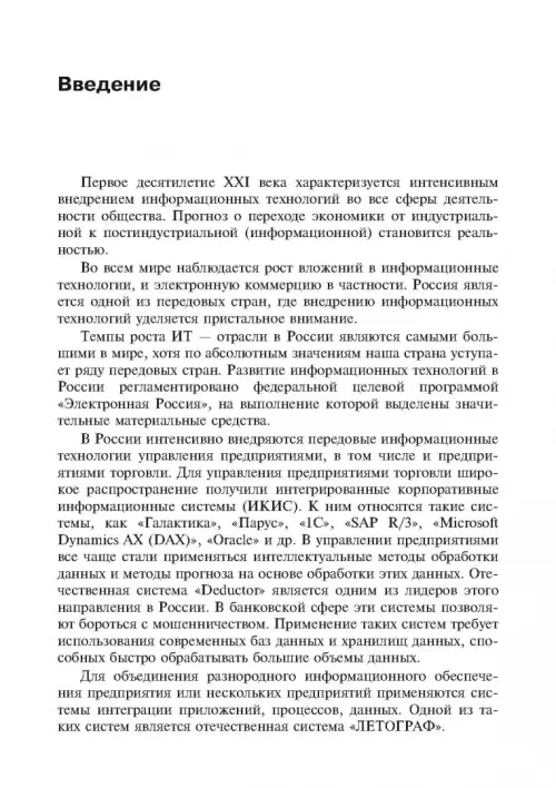 В пособии особое внимание уделено применению информационных технологий в коммерческой деятельности предприятий малого, среднего и крупного бизнеса. В нем отражены последние достижения в области информационных технологий применительно к коммерческой деятельности: сервис-ориентированной архитектуры информационного обеспечения предприятий, Веб-сервисы, применение интеллектуальных методов обработки данных и прогнозирование деятельности предприятий на их основе, технологии Web 2.0 и др. Рассмотрено применение интегрированных корпоративных информационных систем, таких как, "Галактика" "SAP NetWeaver" "Microsoft Dynamics AX" и др. для управления торговыми предприятиями.