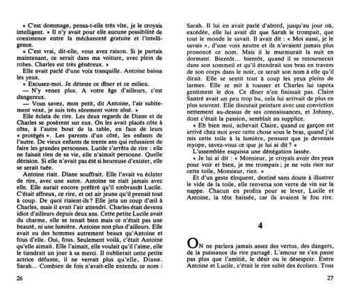 За скучным ужином Люсиль знакомится с Антуаном, парижским издателем. Их знакомство перерастает в бурную плотскую страсть, нарушающую прекрасное интеллектуальное спокойствие Люсиль. Прощай, спокойствие и безразличие. Но Люсиль замужем за Чарльзом, к которому она питает глубокую привязанность, и просьба сделать выбор удивляет ее. Вопреки всем своим принципам, она в конечном итоге делает свой выбор в пользу Антуана. «Ты вернешься», — говорит ей Чарльз. Она действительно вернется, как только у Антуана возникнут материальные проблемы, которые ее пугают. Если верить Люсиль, любовь не приносит счастья: без денег она в скором времени обречена. Позже Люсиль снова увидит Антуана на другом светском ужине. Тогда они станут чужими друг другу...