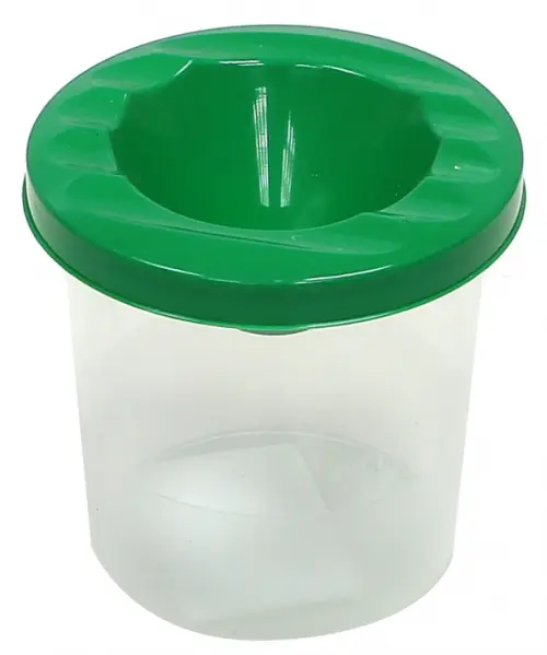 Стакан-непроливайка подходит для использования при рисовании красками. Ложбинки в крышке позволяют класть на неё кисти, не пачкая поверхность стола. Специальная форма стакана с плотно закрывающейся крышечкой не только исключает возможность вытекания воды, но и позволяет переносить стакан с одного места на другое. Благодаря съемной крышке воду можно менять любое количество раз. Стакан-непроливайка станет полезным аксессуаром для художников всех возрастов, он изготовлен из прочного пластика, который легко моется и не требует особого ухода.